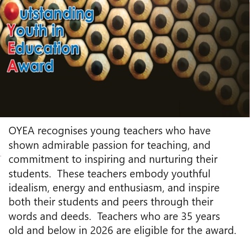 Nominations of the following awards are now open. Please click on the relevant icon to nominate the deserving teacher.